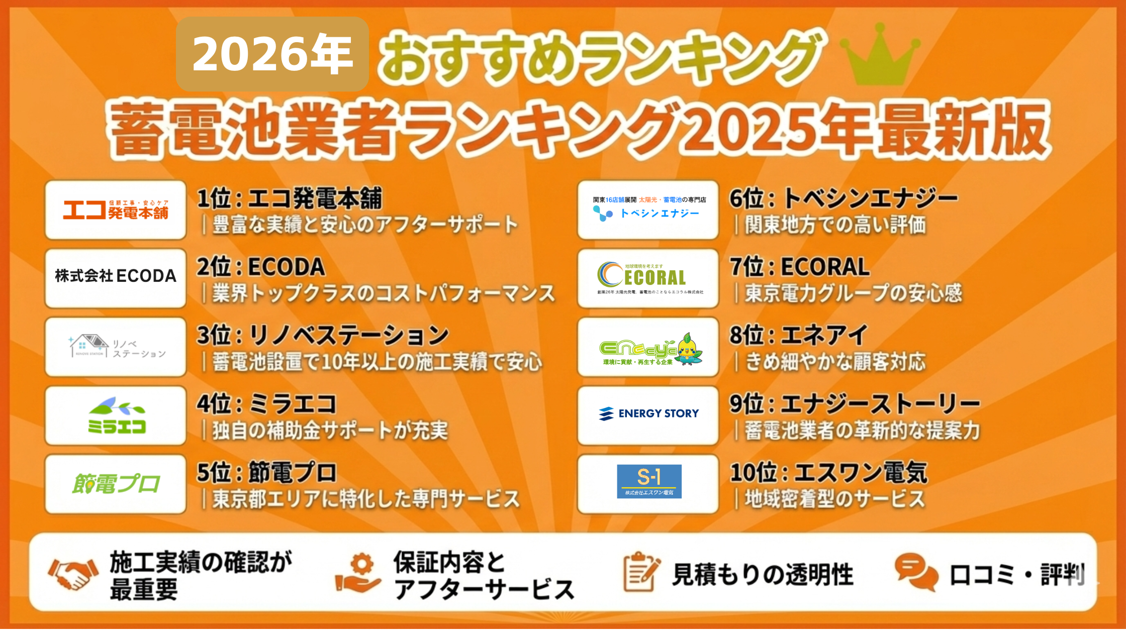 蓄電池業者ランキングおすすめ10社!【2026年1月最新版】