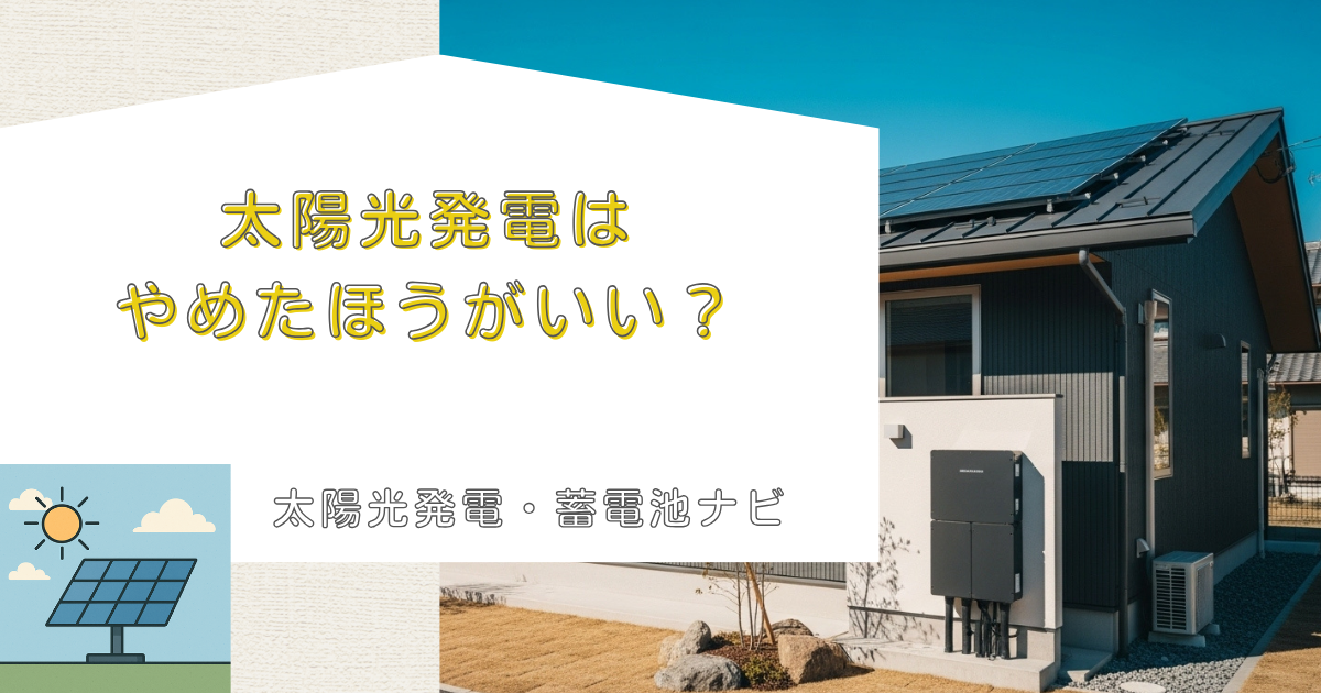 太陽光発電の導入を検討している方の中には、「やめたほうがいい」という意見を耳にして迷われている方も多いのではないでしょうか。実際に、太陽光発電には多くのメリットがある一方で、設置環境や経済状況によっては期待した効果が得られないケースも存在します。
